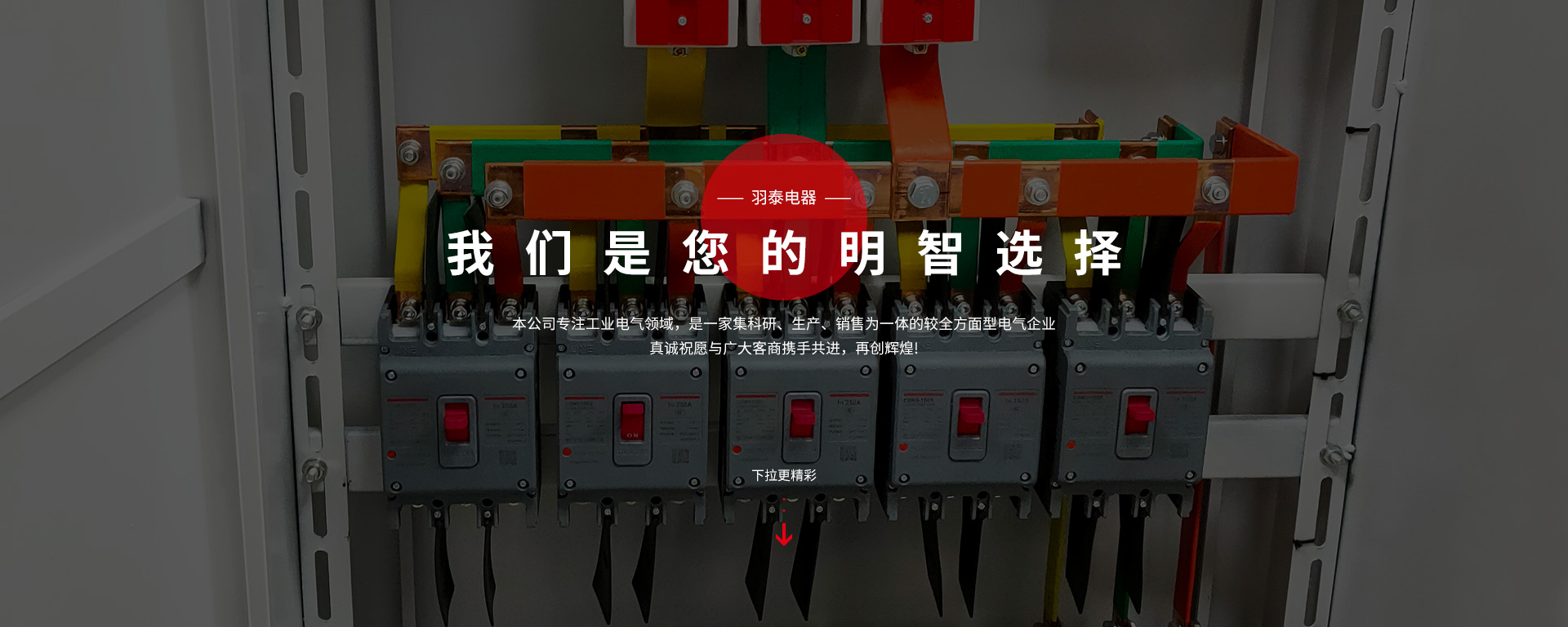 本公司坐落于人杰地靈,“中國制造之都“浙江省臺州市-黃巖。專注工業(yè)電氣領域,是一家集科研、生產、銷售為一體的較全方面型電氣企業(yè)。主要生產:低壓成套配電箱、配電柜、電表箱、動力箱、照明箱、工地臨時箱、設備控制箱,以及各種元器件。元器件主要有:雙電源自動轉換開關、塑料外殼式斷路器、小型斷路器、漏電斷路器;隔離開關、熔斷式隔離開關等,公司產品嚴格按照國家CQC,CCC標準執(zhí)行,滿足于家庭與工業(yè)要求。我們秉承“電箱、元器件"一條龍服務。